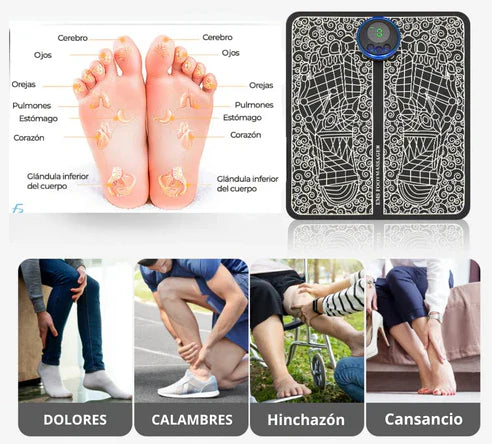 Estimula los puntos de acupuntura, a través de microcorrientes eléctricas que penetran profundamente en los músculos de los pies, reduciendo en pocos minutos de uso diario la inflamación que está causando el dolor en los pies y las piernas, tanto agudo como crónico.